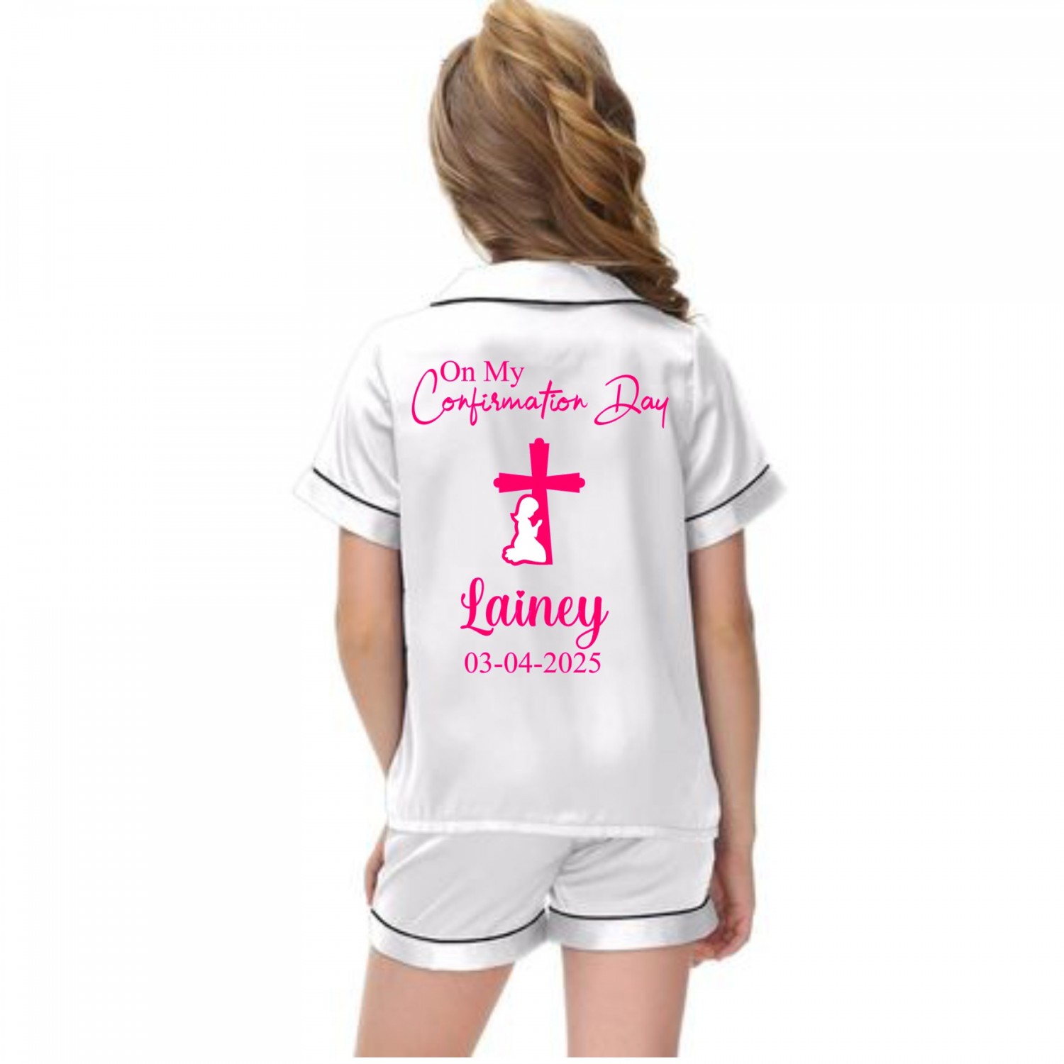 Personalised Confirmation/Communion Day White Satin Short/Long pj's