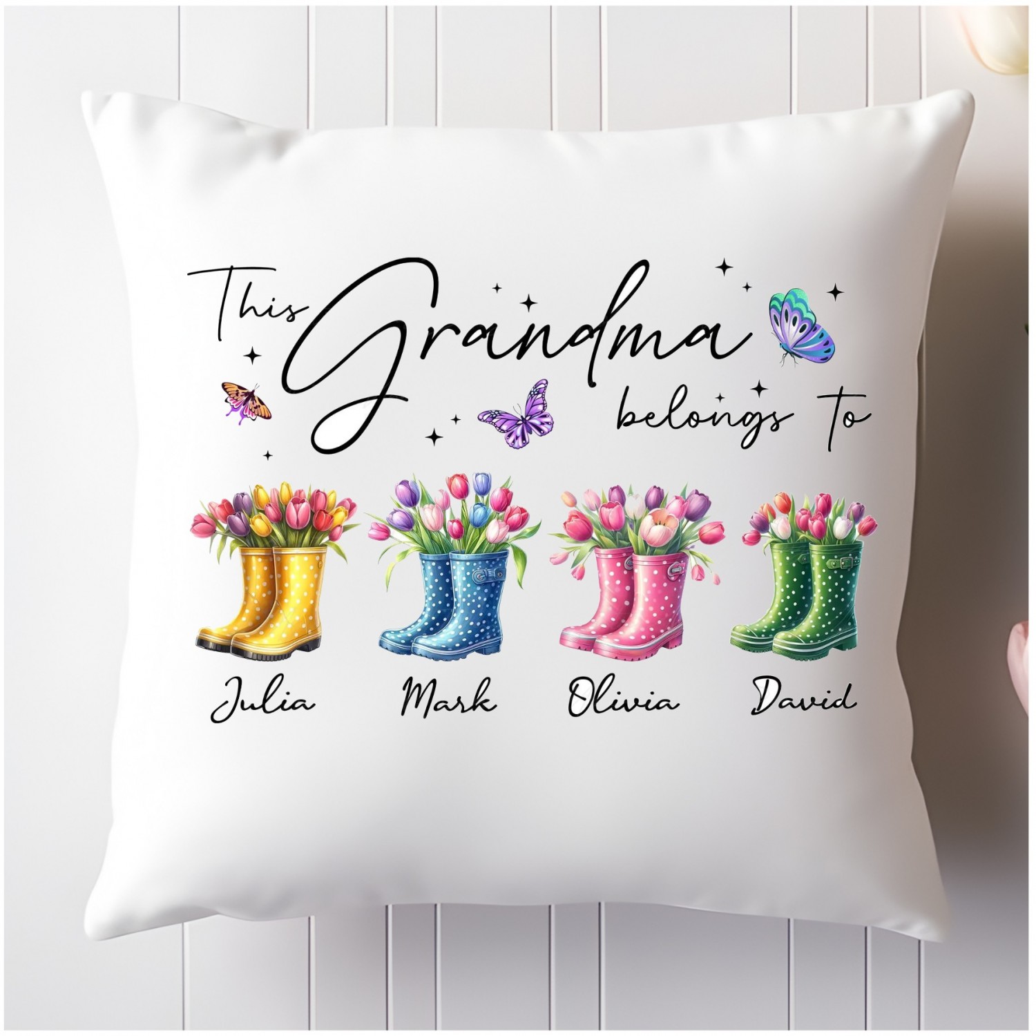 This beautiful personalised Grandma/Mum cushion is the perfect addition to any bedroom or living room. It can be personalised with any title ( eg Grandma/Mum ) to make sure its an extra special gift.