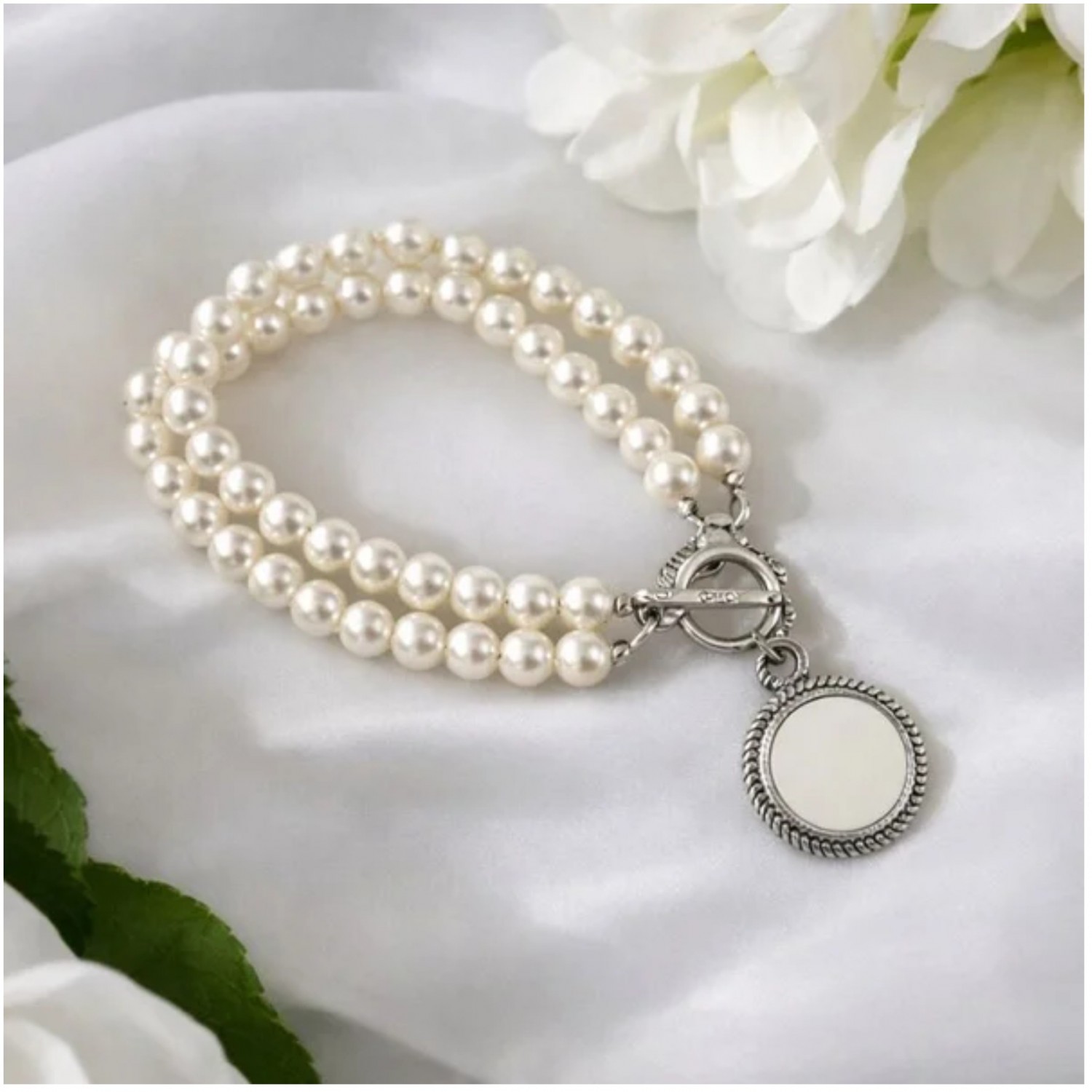 The personalised photo Faux Pearl Bracelet is the perfect accessory to add a touch of sophistication and personal flair to any outfit. Designed with high-quality faux pearls, this bracelet combines the timeless charm of pearl jewellery with the versatility of sublimation printing, allowing for unique and customisable designs. Whether you want to create a personalised gift or a statement piece for yourself, this bracelet is a stylish and affordable choice. Lightweight, durable, and comfortable to wear, it’s ideal for daily use or special occasions. Make every moment shine with the personalised photo Faux Pearl Bracelet – where elegance and individuality come together seamlessly.