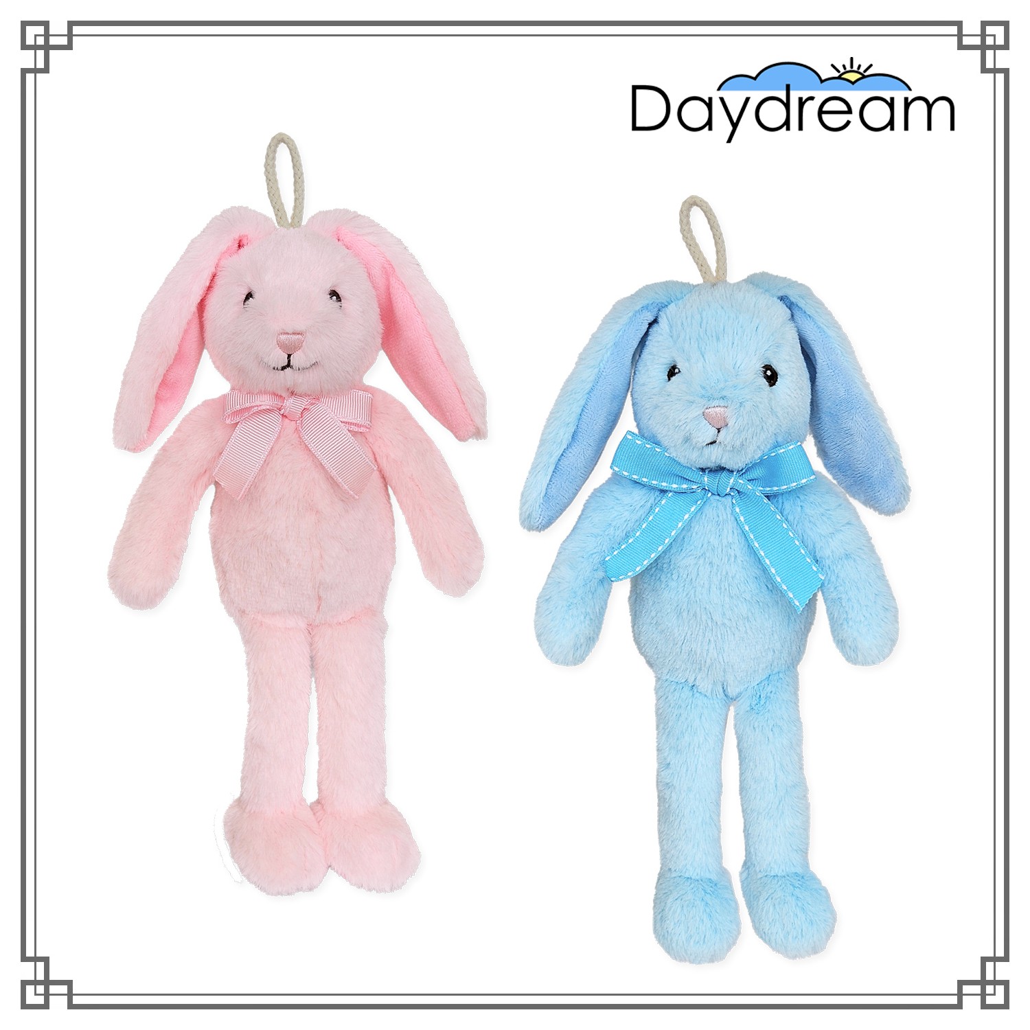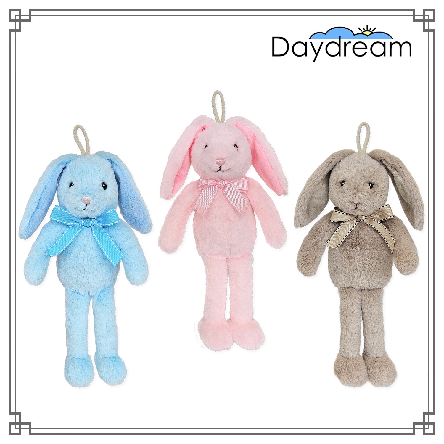 Comes with an adorable matching bow, dangly legs and long droopy ears.